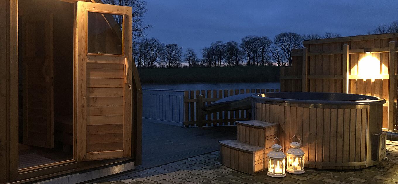 Ein besonderes Highlight für frisch- wie langverliebte ist der ganz neue Outdoor-Wellnessbereich auf Gut Oestergaard. Direkt am Mühlenteich kommt ihr in den Genuss einer exklusiv nutzbaren Außen-Sauna und eines Badezubers (Hot Tub).