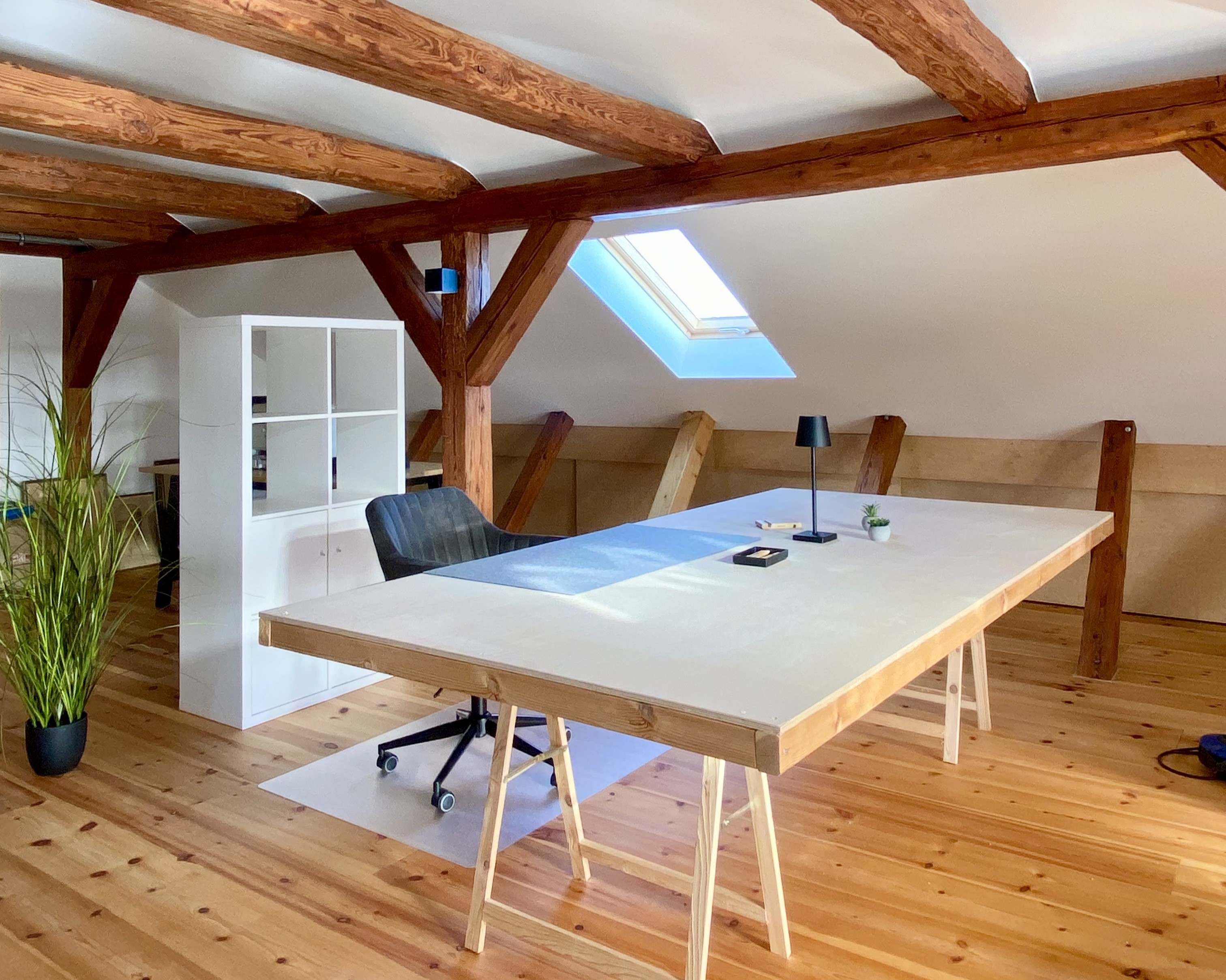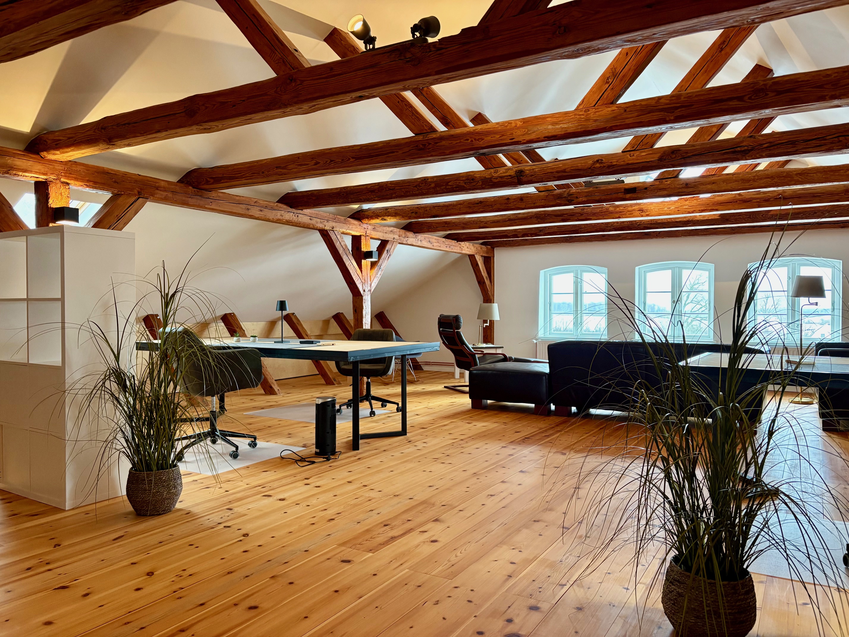 Deine Familie möchte in den Urlaub, aber du musst arbeiten ? Kein Problem ! Dafür gibt es unser “workation loft" im Dachgeschoss des Herrenhauses.