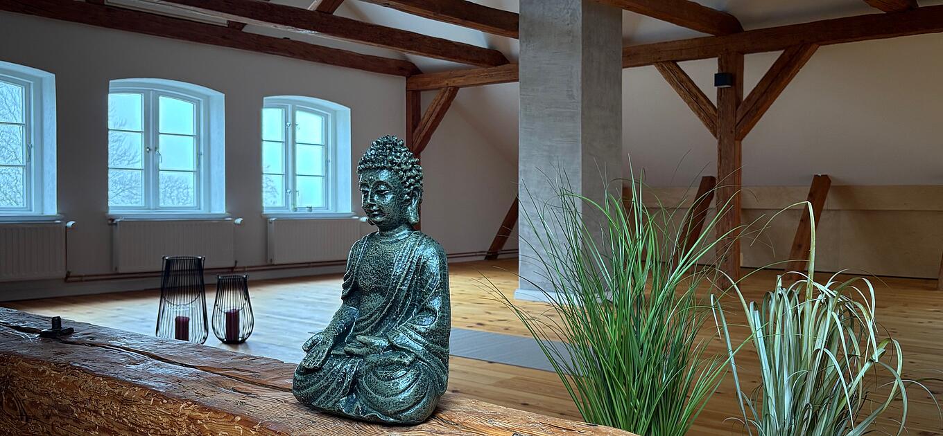 Unser Yoga Loft bietet euch den passenden Rahmen für eure Asanas und die Natur rund um unser Gut ist eine wahre Kraftquelle.